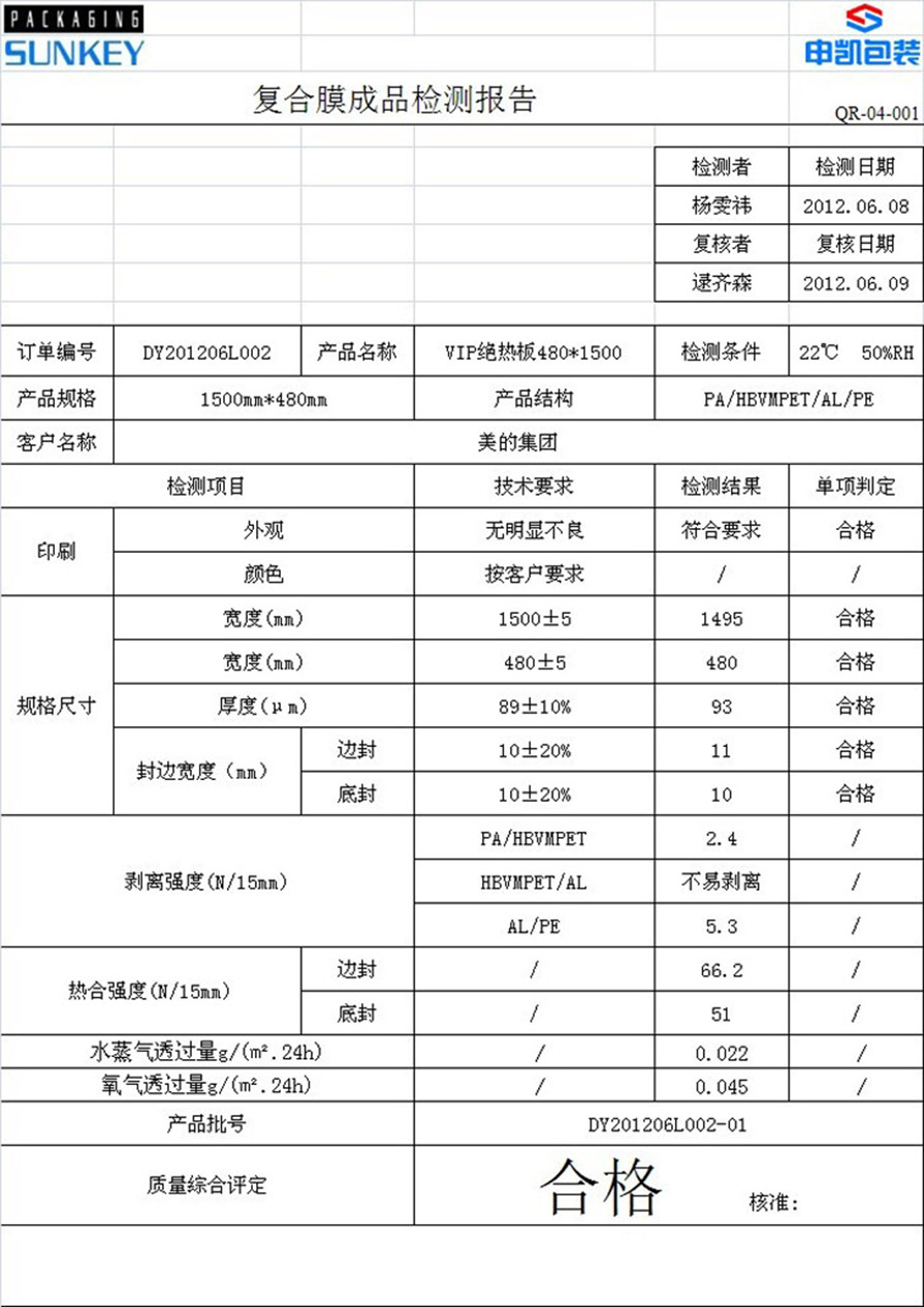 2、水蒸氣透過率達(dá)到 ≤0.04g/(m2?24h),因?yàn)槌檎婵蘸笊蠅π枰4?0年以上。 防止漏氣、漲包現(xiàn)象。