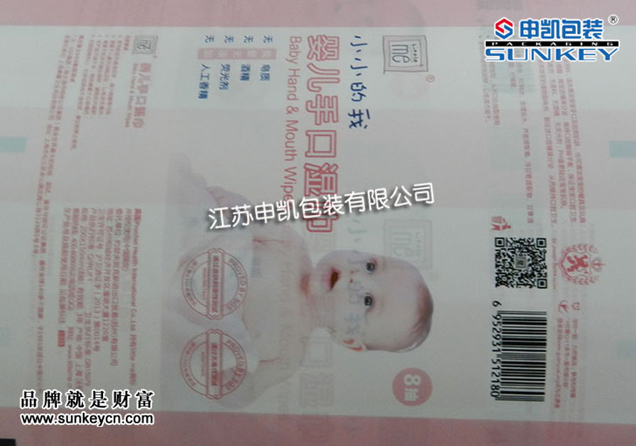 說明:嬰兒濕巾紙包裝膜材質一般是由OPP/CPP組成,經過印刷-檢品-復合-分切多層工藝。