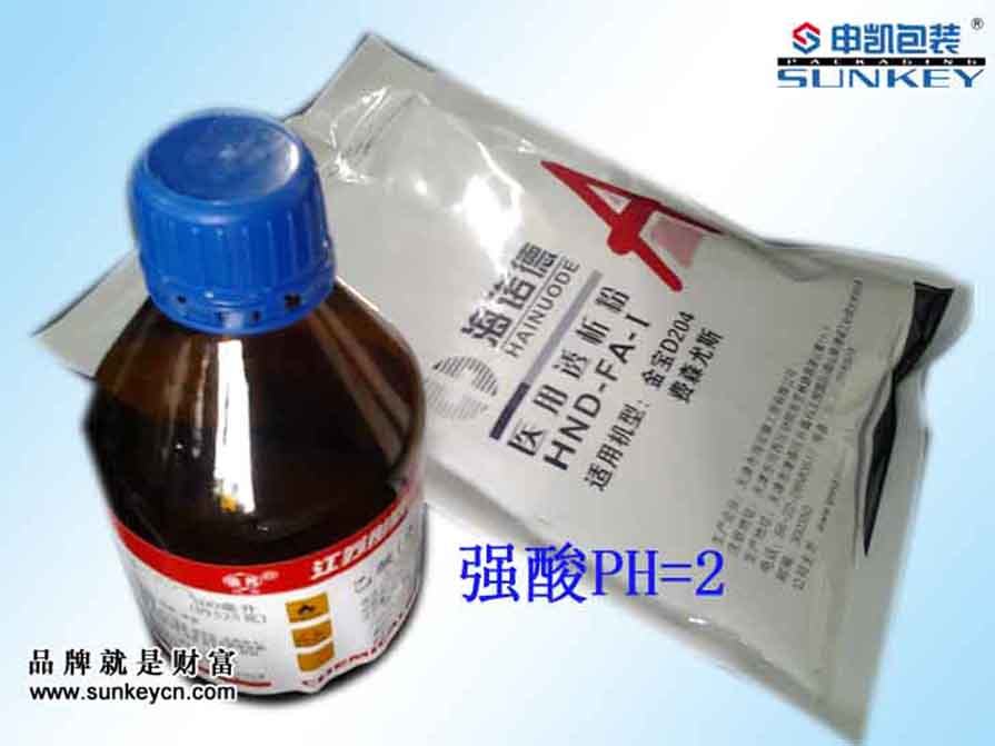 強酸產品(粉末、液體)包裝專用。PH值為2的產品專用外包裝袋。