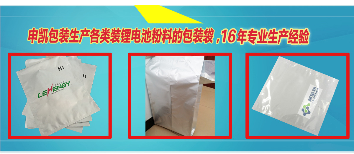申凱包裝鋰電池粉末,正極材料鋁箔包裝袋定制生產(chǎn)廠家,定制批發(fā)各種功能性鋁箔包裝袋,可小批量定購(gòu)試樣,也可以聯(lián)系技術(shù)客服索取樣品。