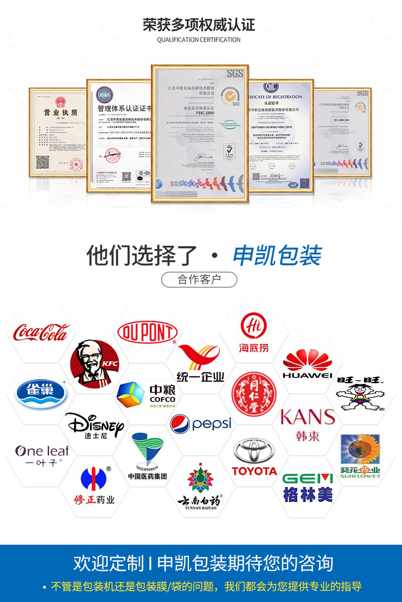 只要用了我們的包裝,不管是包裝膜的問題還是包裝機的問題,都是我們的問題!只要有質量問題,馬上召回,不管有多遠!